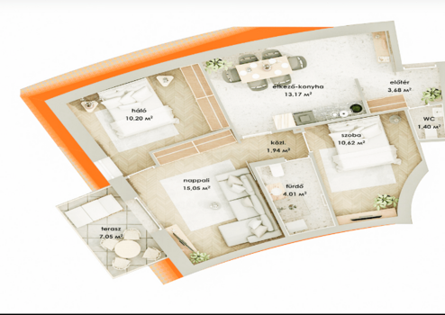 Diese Wohnung verfügt über eine Wohnfläche von 60m² plus eine 7 m² Terrasse.