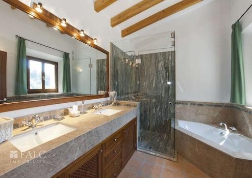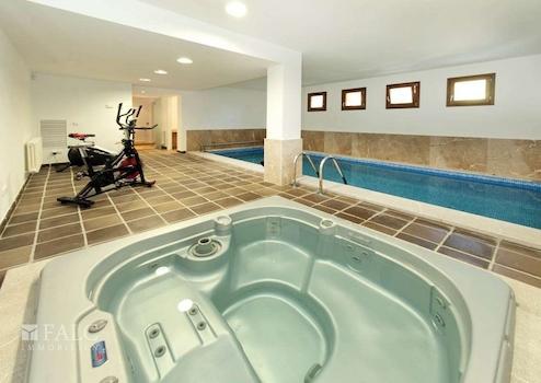 Es verfügt über alle kommunalen Dienstleistungen wie fließendes Wasser und Kanalisation. 3 Etagen mit insgesamt 534m2 gebaut, Top-Qualität rustikalen Oberflächen, Hallenbad, Jacuzzi, Outdoor-Infinity-Pool, Abstellraum, kleiner Garten. Doppelgarage, Aufzug aus dem Keller mit Zugang zum ersten Stock, der Keller hat auch einen Fitnessraum, 1 Schlafzimmer mit Bad für den Dienst, 1 WC, Maschinenraum mit 2 Heizkesseln, Entkalkungsanlage, 2 Zisternen, 1 Waschküche, Alarmanlage im ganzen Haus, Gasöl und Klimaanlage mit Wärmepumpe. Das Erdgeschoss verfügt über 1 Schlafzimmer mit Bad en suite, 1 Gäste-WC, Wohn-Esszimmer mit Kamin und Zugang zu einer Veranda-Terrasse, ausgestattete Küche mit Speisekammer. Die erste Etage verfügt über 2 Schlafzimmer mit eigenem Bad, 1 Ankleidezimmer, Terrassen mit Meerblick, Außenpatio.