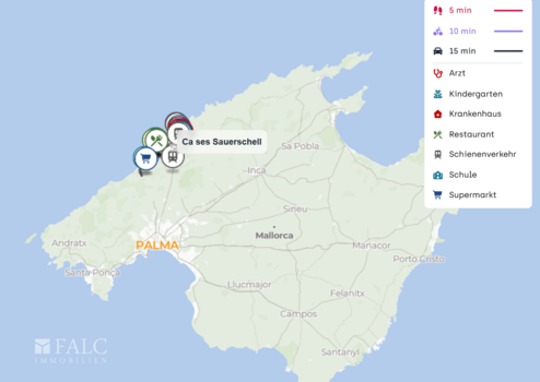 Für Familien ist die Lage ebenfalls attraktiv: Ein Kindergarten wie CEI Sa Vinyeta sowie eine Schule sind in kurzer Distanz erreichbar, sodass der Tagesablauf gut planbar bleibt. Die medizinische Grundversorgung ist durch eine Apotheke in unmittelbarer Umgebung ergänzt, weitere Angebote befinden sich im erweiterten Umkreis.