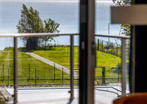 Ein privater Strandbereich mit Sonnenliegen, ein panoramischer Pool mit Blick auf den Balaton, ein eigener Steg sowie liebevoll gestaltete Parkanlagen und Spazierwege laden zur entspannten Erholung ein.