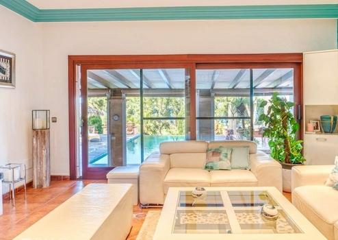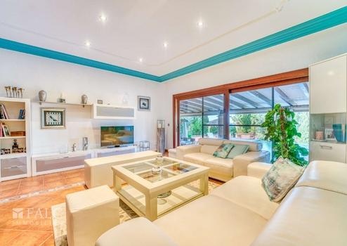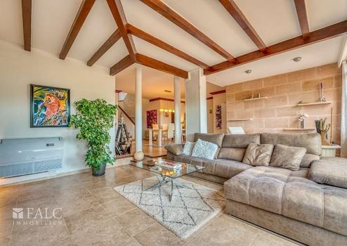 Das Haus selbst beeindruckt durch seine klare Großzügigkeit und eine Architektur, die Raum für Begegnung ebenso bietet wie für Rückzug. Zwei Ebenen erschließen ein Wohnkonzept, das sowohl für Familien als auch für Mehrgenerationenhaushalte ideal geeignet ist. Mittelpunkt des Hauses ist der rund 70 m² große Hauptsalon mit Essbereich, Kamin und weitläufigen Panoramafenstern, die das mediterrane Licht in den Raum fluten lassen. Ein zweiter, etwa 60 m² großer Salon am Pool erweitert die Wohnfläche um einen geselligen Bereich mit Billardtisch und eigenem Duschbad – perfekt für entspannte Abende oder Gäste.