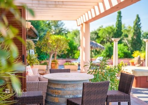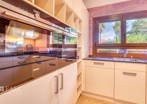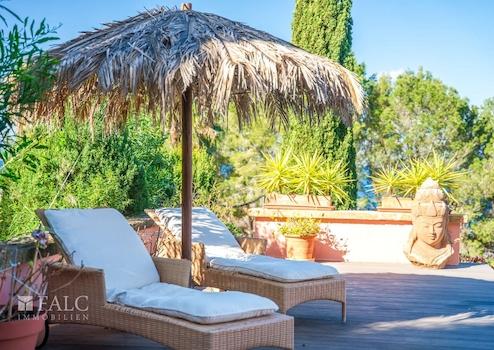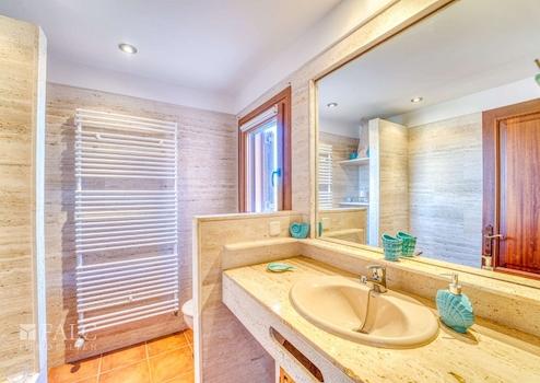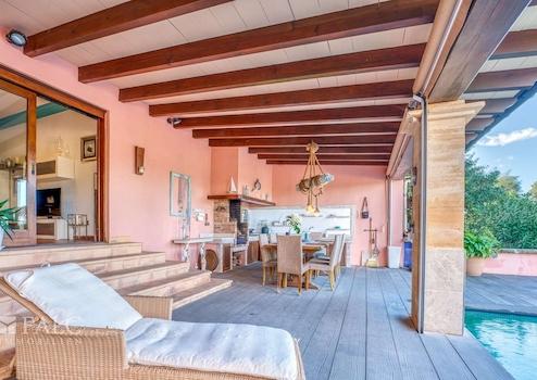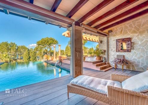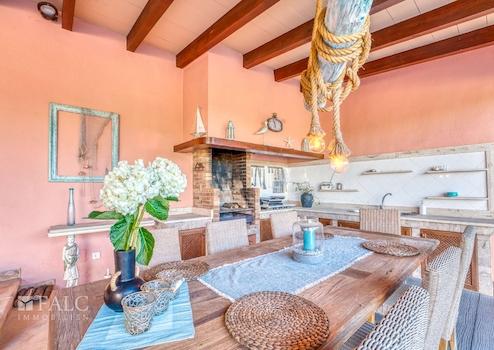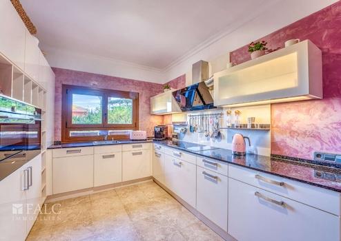 Auch der Außenbereich zeigt sich außergewöhnlich großzügig gestaltet. Rund um das Haus verteilen sich etwa 190 m² Terrassenflächen, davon rund 60 m² überdacht. Eine voll ausgestattete BBQ-Außenküche macht den Poolbereich zum perfekten Treffpunkt für lange mediterrane Abende.
