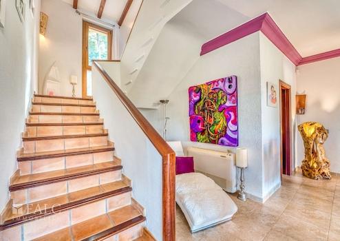 Nur wenige Schritte vom Meer entfernt und dennoch eingebettet in die ruhige Landschaft der Sierra de Llevant entfaltet dieses außergewöhnliche Anwesen seinen ganz eigenen Charakter. In erhöhter Hanglage gelegen, verbindet die Immobilie Privatsphäre, Großzügigkeit und eine seltene Nähe zum Wasser: Die Küste erreichen Sie bereits nach etwa 350 Metern, die Promenade mit ihren Restaurants und Cafés nach rund 500 Metern. Auch die Plaza – das lebendige Zentrum von Colònia de Sant Pere – ist bequem zu Fuß erreichbar und lädt zum Flanieren, Einkaufen oder zu entspannten Abenden unter freiem Himmel ein. Entlang der Küste führen idyllische Wege bis nach Betlem und eröffnen immer wieder neue Perspektiven auf das Meer.