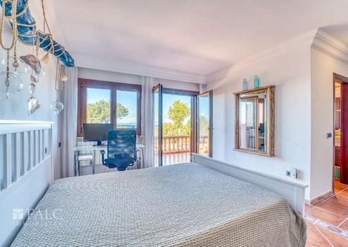 Ein besonderes Highlight erwartet Sie im Obergeschoss: Von der Terrasse des Hauptschlafzimmers eröffnet sich ein eindrucksvoller Blick über das Meer, den Hafen und die Dächer von Colònia de Sant Pere. Besonders in den Abendstunden entsteht hier eine fast magische Atmosphäre, wenn sich das warme Licht der Ortschaft mit den Farben des Sonnenuntergangs über der Bucht verbindet.