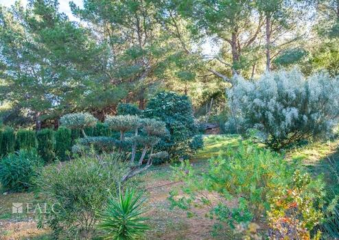 Der Mittelpunkt des Gartens ist zweifellos der etwa 50 m² große, beheizbare Überlaufpool mit zwei Wasserfontänen – ergänzt durch einen Whirlpool, der das Outdoor-Erlebnis abrundet. Der liebevoll angelegte Garten umgibt das Haus mit mediterraner Vegetation, während das Grundstück oberhalb des Hauses bis hinauf zur Bergspitze reicht und in natürlichem Wildwuchs belassen wurde.