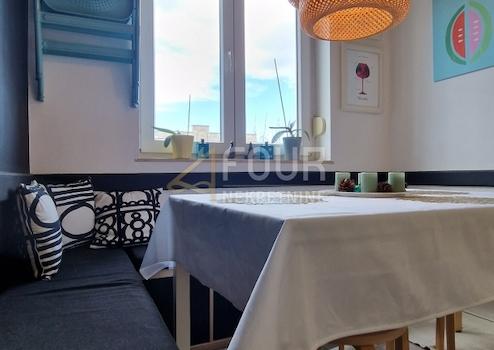 Die Wohnung besteht aus drei Schlafzimmern und einem geräumigen Wohnzimmer mit einem großen Balkon von 12 m2, der dem Raum zusätzliches Licht und Luftigkeit verleiht. Die funktionell eingerichtete Küche mit Essbereich und zwei Badezimmer sorgen für zusätzliche Bequemlichkeit im Alltag. Die Aufteilung ermöglicht eine einfache Umgestaltung eines Zimmers in ein Homeoffice, ein Kinderzimmer oder einen Gästebereich und macht die Immobilie äußerst anpassungsfähig.