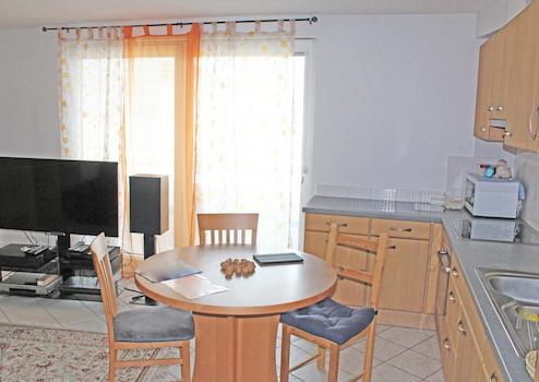 Die Wohnung befindet sich im obersten Geschoss und bietet dadurch viel Licht, Privatsphäre und einen angenehmen Ausblick. Die große Panoramaterrasse erweitert den Wohnraum ins Freie und schafft eine besondere Wohnqualität. Die Immobilie ist sofort beziehbar und umfasst neben der Wohnung selbst auch einen Keller und eine Garagenbox. Zum Verkauf steht also ein Gesamtpaket - bindungsfrei - sprich ohne Konventionierung - u. eignet sich damit auch bestens als Ferien-Immobilie!