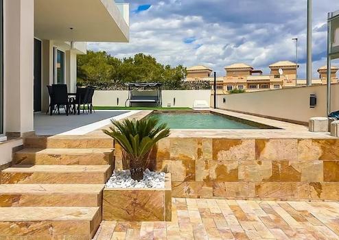 Nur 5 Autominuten entfernt befinden sich der Strand von Punta Prima, der Golfplatz von Villamartin und das Einkaufszentrum La Zenia Boulevard, das größte in der Provinz Alicante, mit mehr als 150 Geschäften, Restaurants und Unterhaltungsmöglichkeiten. Diese exklusive Wohnanlage ist ideal für diejenigen, die ein modernes Haus an der Costa Blanca suchen, mit Zugang zu Stränden, Golf und allen Annehmlichkeiten. Der Flughafen Alicante ist 40 Minuten von der Anlage entfernt.