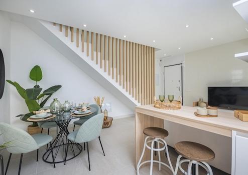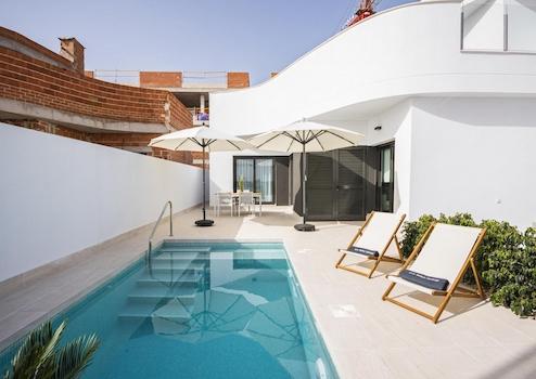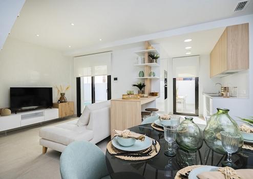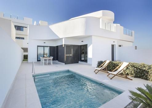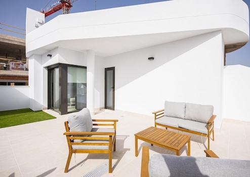Diese modernen, halb freistehenden Villen in Torrevieja bieten drei Schlafzimmer, drei Badezimmer, einen privaten Swimmingpool, Einbauschränke und einen Tiefgaragenstellplatz. Auf drei Etagen angelegt, verbinden sie großzügige Innenräume mit mehreren Terrassen und schaffen so ein Wohngefühl voller Licht, Raum und Komfort.