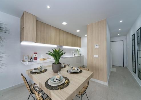Erleben Sie höchsten Wohnkomfort in diesen modernen Apartments in der Nähe des Salzsees von Torrevieja. Die lichtdurchfluteten Wohnungen bieten zwei Schlafzimmer und drei elegante Bäder, ausgestattet mit Einbauschränken für optimalen Stauraum. Genießen Sie sonnige Stunden auf dem eigenen Solarium oder entspannen Sie im gemeinschaftlichen Swimmingpool. Für Ihre Fahrzeuge steht eine Tiefgarage mit zusätzlichem Abstellraum bereit.