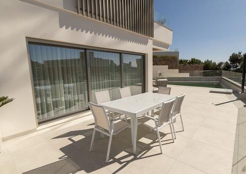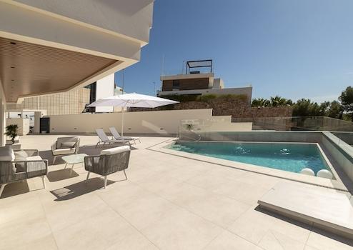 Die Villen liegen am Hang von Campoamor, in unmittelbarer Nähe der wunderschönen Strände La Glea und Aguamarina mit ihren langen Promenaden und Marinas. Das Zentrum von Campoamor ist nur wenige Gehminuten entfernt und bietet alle Annehmlichkeiten des täglichen Lebens, von Einkaufsmöglichkeiten über Supermärkte bis hin zu Bars und Restaurants. Diese exklusive Lage verbindet mediterranes Flair, Luxus und Komfort und schafft ein Zuhause, in dem Lebensqualität und Erholung perfekt verschmelzen.
