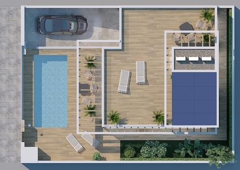 Diese exklusive Villa mit drei Schlafzimmern und zwei Badezimmern bietet höchsten Wohnkomfort und ein Leben voller Luxus und Entspannung. Auf Ihrem eigenen Grundstück genießen Sie einen privaten Swimmingpool sowie einen Stellplatz, während die offene Gestaltung und die energieeffizienten Technologien modernen Komfort mit nachhaltigem Wohnen verbinden.