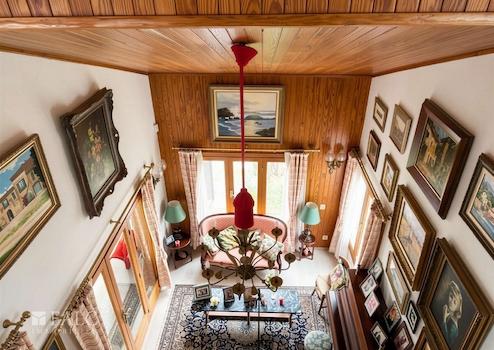 Das Haupthaus bietet eine Wohnfläche von circa 250 m². Im Erdgeschoss befinden sich ein großzügiges Wohnzimmer, ein Schlafzimmer, eine Küche sowie ein Badezimmer. Zwei helle Wintergärten sorgen für viel Tageslicht und erweitern den Wohnbereich. Zudem verfügt das Haus über einen Aufzug, der einen komfortablen Zugang zu den Etagen ermöglicht.