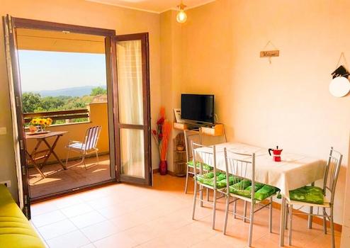 Die Wohnung gehört zu einem liebevoll gestalteten Ensemble mehrerer Häuser, die zusammen eine warme, mediterrane Atmosphäre schaffen. Im Erdgeschoss lädt ein etwa 6 m² großer Balkon dazu ein, die Sonne zu genießen – sei es beim Frühstück im Freien, einem Glas Wein am Abend oder beim Grillen mit Blick über die sanfte Landschaft.