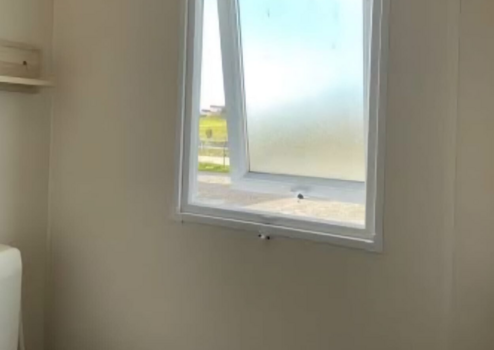 Das Badezimmer ist mit Dusche, Waschbecken, Spiegel, Ablagen, Handtuchhalter und einem Dreh-Kipp-Fenster für optimale Belüftung ausgestattet. Es verfügt über einen separaten Eingang vom Hauptschlafzimmer aus.