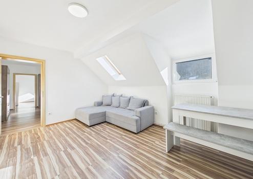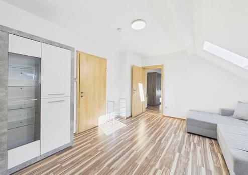 Ein Kellerabteil sowie ein großzügiges Abteil im Dachgeschoss bieten zusätzlichen Stauraum.