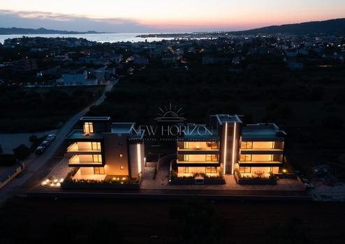 In a quiet and green part of Sukošan, not far from the sea and the city of Zadar, there is an exclusive residential project - a combination of modern architecture, Mediterranean ambience and top quality construction.