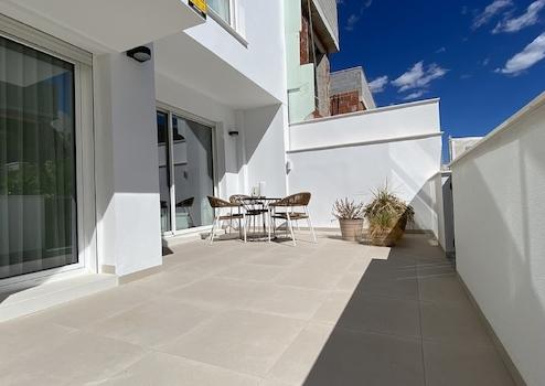 Dieses moderne Apartment in Playamar XII vereint Komfort, Stil und eine perfekte Lage an der Costa Blanca. Die kleine Anlage mit nur 16 Einheiten garantiert ein ruhiges Wohnumfeld und ein exklusives Wohngefühl. Die Wohnungen verfügen über zwei geräumige Schlafzimmer, zwei komplett ausgestattete Badezimmer sowie praktische Einbauschränke. Die Erdgeschosswohnungen bieten großzügige Terrassen vorne und hinten sowie eigene Parkplätze, während die Penthäuser mit Solarium, Sommerküche und Pergola zusätzliche Outdoor-Flächen für Sonne und Entspannung bieten.