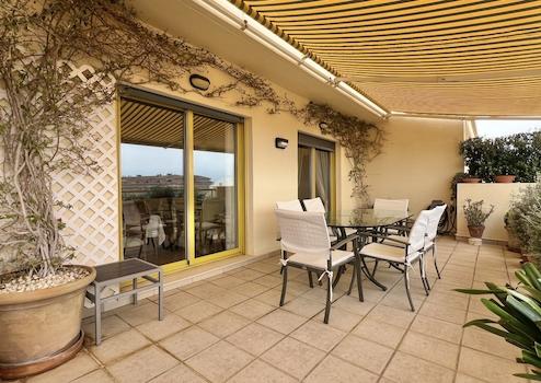 Massivbauweise, Kirschholzboden, Klimaanlagen, Pool auf der Dachterrasse, Stellplatz, doppelt verglaste Aluminiumfenster, Gemeinschaftspool, Berg- & Schlossblick...