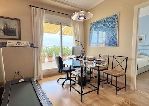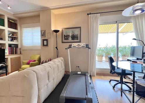 Bereits beim Betreten beeindruckt das stilvolle Entrée mit offener Treppe und warmen Kirschholzböden, die sich durch den gesamten Wohnbereich ziehen. Der helle Wohn- und Essbereich bietet eine elegante Atmosphäre mit direktem Zugang zur großzügigen Hauptterrasse. Große Schiebeelemente sorgen für viel Tageslicht und schaffen einen fließenden Übergang zwischen Innen- und Außenbereich. Die separate, voll ausgestattete Küche überzeugt durch ihre Größe, viel Arbeitsfläche sowie hochwertige Einbauten - ideal für Familien oder passionierte Hobbyköche. Das Penthouse verfügt über 4 großzügige Schlafzimmer, 3 stilvolle Badezimmer, ein Gäste-WC und ein zusätzliches Wohn-/Arbeitszimmer auf der oberen Ebene. Das Hauptschlafzimmer mit Terrassenzugang bietet ein ruhiges Refugium mit viel Privatsphäre. Die Bäder sind hochwertig ausgestattet, teils mit Doppelwaschbecken und Badewanne/Dusche. Mehrere Terrassenflächen bieten Sonne und Schatten zu jeder Tageszeit und tolle Aussicht auf den Montgo und das Schloss von Denia. Das absolute Highlight ist die private Dachterrasse mit eigenem Pool - ein exklusiver Rückzugsort mit weitem Blick über Dénia und die umliegende Landschaft. Hier genießen Sie mediterrane Lebensqualität auf höchstem Niveau - ob beim Sonnenbaden, Entspannen oder bei geselligen Abenden mit Familie und Freunden.