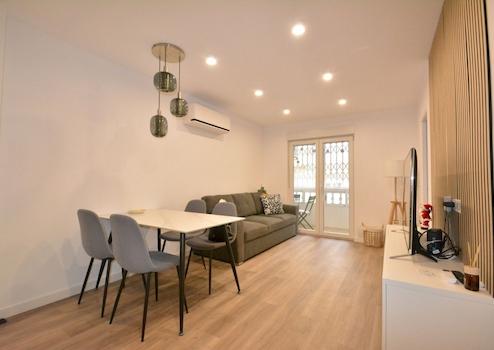 Die Wohnung wurde komplett renoviert und mit neuen Elementen ausgestattet, darunter Fußböden, Sanitäranlagen, Elektroinstallationen, Fenster, Küchenausstattung, Möbel und Haushaltsgeräte. Das Badezimmer verfügt über eine Fußbodenheizung, und im Hauptschlafzimmer ist die Vorinstallation für eine Fußbodenheizung bereits vorhanden. In jedem Zimmer sind brandneue Klimaanlagen installiert.