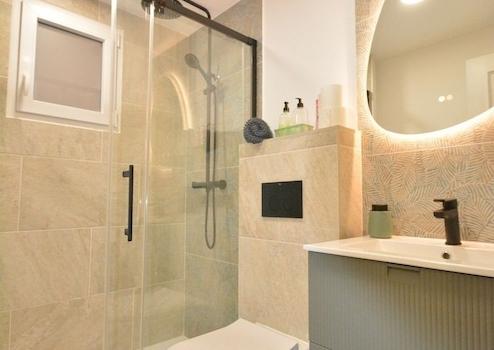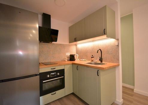 Diese renovierte Erdgeschosswohnung hat eine konstruierte Fläche von 57 m², davon sind 44 m² nutzbare Innenfläche und 15 m² Terrasse. Sie verfügt über zwei Schlafzimmer und ein Badezimmer. Die Küche ist offen gestaltet und mit dem Wohnbereich verbunden, wodurch ein praktischer und komfortabler Grundriss entsteht. Die Wohnung befindet sich im Erdgeschoss eines Gebäudes mit Aufzug.