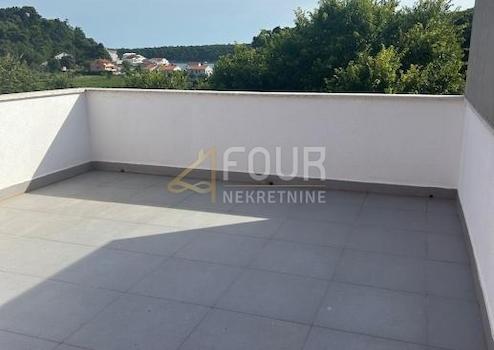 Zweistöckige Wohnung in Palit auf der Insel Rab, in einem kleineren Neubau in einer ruhigen und gepflegten Siedlung. Die Gesamtwohnfläche beträgt 72,25 m2, zusätzlich verfügt die Wohnung über einen Balkon und eine geräumige Terrasse mit einem schönen Blick auf das Meer. Das Grundstück verfügt über einen Außenparkplatz und im Erdgeschoss des Gebäudes gibt es einen gemeinsamen Lagerraum, den die Bewohner nutzen können.