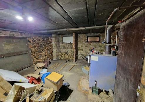 Das Haus ist komplett unterkellert und trocken bis auf einen der 4 Kellerräume, sehr solide gebaut. Alle Versorgungs-Anschlüsse sind vorhanden und man kann mit Gas oder Holz heizen.