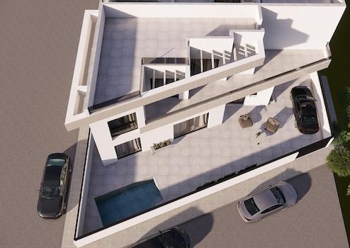 Die Immobilie steht auf einem eigenen Grundstück und bietet die Möglichkeit, einen privaten Swimmingpool zu installieren, der an warmen Tagen für Erfrischung sorgt und gleichzeitig eine exklusive Rückzugsoase direkt vor der Haustür schafft. Ein Parkplatz auf dem Grundstück sorgt für zusätzlichen Komfort und Sicherheit. Das Haus ist flexibel gestaltbar und ermöglicht es den zukünftigen Eigentümern, persönliche Akzente bei Ausstattung und Außenbereich zu setzen, wodurch ein maßgeschneidertes Wohngefühl entsteht.