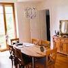 Aufteilung: Diele, kleine möblierte Kochküche, zwei Räume mit Verbindungstür, ein Esszimmer mit kleinem Holzbalkon, ein großes Bad mit Dusche, Badewanne, WC, Waschtisch, Waschmaschinen-Anschluss
