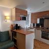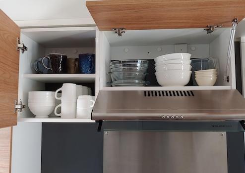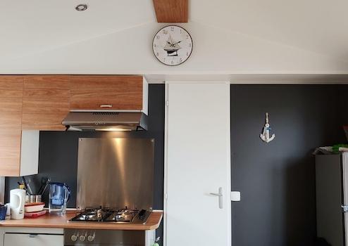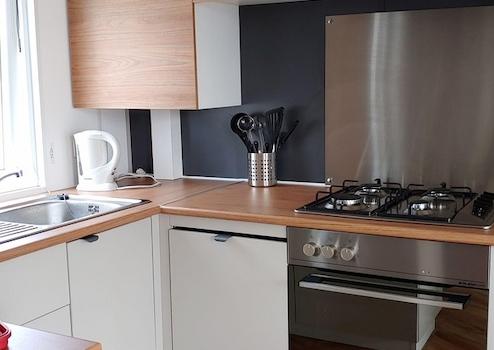 Der Wohnraum verfügt über einen TV, WLan-Box für Internet, gemütliche Eck-Couch, Essbereich, Einbauküche mit Kühl/Gefrierkombination, Kaffeemaschine, Toaster, Wasserkocher, Backofen, Mikrowelle, 4-Feld-Gas-Herd, Dunstabzugshaube und Geschirrspüler. Heisses Wasser kommt von einer Gas-Therme, für die kalten Tage gibt es im jedem Zimmer elektrische Heizkörper.