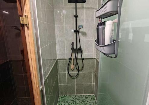 - rechts davon das Badezimmer mit Dusche / Wanne / Sauna