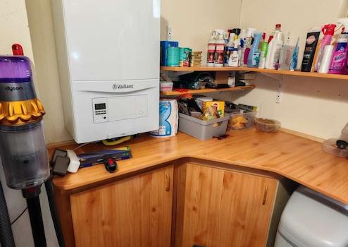 - im weiteren Verlauf rechts des Flurs dann der Technikraum mit Wasseraufbereitung, neuer Gastherme, Waschmaschine & Trockner