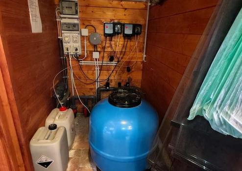 - Anbau mit Schwimmbadtechnik, einem Gäste-WC und einem Aufenthaltsraum. Hier könnte mit wenig Aufwand auch noch ein richtiges Gäste-Apartment integriert werden