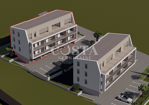Wohnung im Bau in Skročini bei Zadar zu verkaufen. Die Wohnung mit einer Wohnfläche von 33,08 m² befindet sich im zweiten Obergeschoss eines Gebäudes mit 10 Wohneinheiten. Sie besteht aus einem Schlafzimmer, einem Badezimmer, einem Wohnzimmer, einer Wohnküche, einem Flur und einer zusätzlichen Loggia von 7,11 m². Zur Wohnung gehören ein Parkplatz und ein Abstellraum. Die Gesamtnutzfläche der Wohnung inklusive aller Nebenkosten beträgt 55,96 m² (K.V. 42,17 m²).