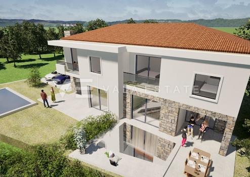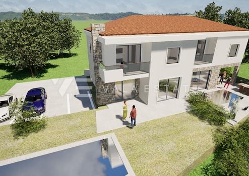 Immobilienangebot auf der Insel Krk, Malinska – ein modernes Doppelhaus in bester Lage, nur 700 m vom Meer und dem Ortszentrum entfernt. Das Haus bietet 122,81 m² Wohnfläche, verteilt auf Erdgeschoss und Obergeschoss, die durch eine Innentreppe verbunden sind. Im Erdgeschoss befinden sich Eingangsbereich, Gäste-WC, Speisekammer, Wohnküche und Wohnzimmer mit Zugang zu einer überdachten Terrasse und dem Garten. Im Obergeschoss befinden sich Flur, Badezimmer und drei Schlafzimmer, eines davon mit eigenem Bad und Zugang zu einem überdachten Balkon mit herrlichem Meerblick. Der 110 m² große, umzäunte Garten bietet viel Privatsphäre. Zwei Parkplätze mit Ladestation für Elektrofahrzeuge runden das Angebot ab. Für den Bau werden ausschließlich hochwertige Materialien und Ausstattungen verwendet, darunter erstklassige Keramikfliesen und Parkettböden in den Schlafzimmern, hochwertige Sanitäreinrichtungen, Klimaanlagen in allen Räumen, Fußbodenheizung in Bädern, Flur und Wohnzimmer, hochwertige PVC-Außenfenster und -türen mit Moskitonetzen und elektrischen Rollläden, Sicherheitstüren sowie die Vorbereitung für Solaranlagen, Alarmanlage und Videoüberwachung. Die Immobilie befindet sich derzeit im Bau und soll voraussichtlich Ende 2026 fertiggestellt werden.
