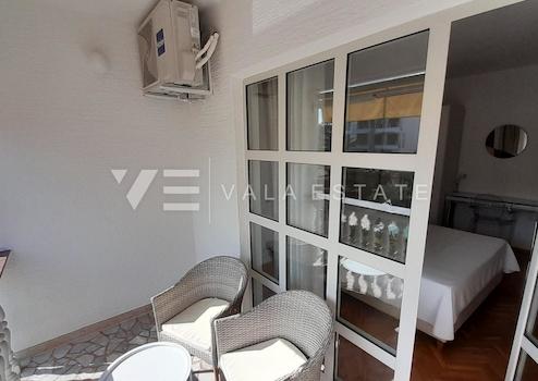 Immobilienangebot auf der Insel Krk, Malinska – Zum Verkauf steht eine 34 m² große Einzimmer Ferienwohnung im Erdgeschoss eines Mehrfamilienhauses. Sie besteht aus Eingangsbereich, Badezimmer, Schlafzimmer, Küche, Esszimmer und Wohnzimmer mit Zugang zu einer überdachten Terrasse und einem 20 m² großen Garten. Die Ferienwohnung ist renoviert, möbliert und ausgestattet, verfügt über Klimaanlage, Aluminiumfenster und -türen, alle notwendigen Dokumente sind vorhanden und sie ist sofort bezugsfertig. Ein Stellplatz im gemeinschaftlichen Innenhof gehört ebenfalls dazu. Die Ferienwohnung befindet sich in ruhiger Lage in der Nähe des Meeres und des Zentrums mit allen Annehmlichkeiten. Sie eignet sich hervorragend zur Eigennutzung oder zur touristischen Vermietung.