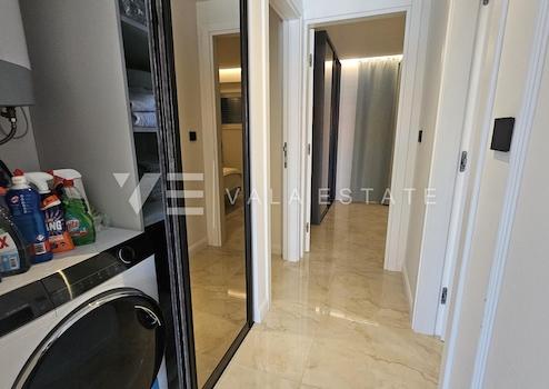 Immobilien Insel Krk, Malinska – Zum Verkauf steht eine neue, moderne Ferienwohnung im Erdgeschoss eines Neubaus mit Garten und Swimmingpool. Die Ferienwohnung hat eine Wohnfläche von 70 m² und besteht aus einem Eingangsbereich, zwei Schlafzimmern, zwei Bädern und einem Verbindungsraum zwischen Küche, Esszimmer und Wohnzimmer mit Zugang zu einer überdachten Terrasse von 19 m² und einem eigenen, eingezäunten und wunderschön angelegten Garten von 300 m² mit einem privaten Pool von 28 m² und einer Liegewiese. Zwei Parkplätze stehen im gemeinsamen Innenhof des Gebäudes zur Verfügung. Hochwertige Bauweise und Ausstattung, PVC-Tischlerei, elektrische Rollläden mit Moskitonetzen, Fußbodenheizung, erstklassige Bodenbeläge, Klimaanlage (Heizung/Kühlung) und neue, hochwertige, maßgefertigte Möbel sind nur einige der Merkmale dieser modernen Ferienwohnung. Sie wird voll möbliert verkauft und ist sofort bezugsfertig. Sie befindet sich in ruhiger Lage, 800 m von schönen Stränden und dem Stadtzentrum mit allen notwendigen Annehmlichkeiten entfernt. Eine ausgezeichnete Gelegenheit für einen Sommeraufenthalt oder als Investition zur touristischen Vermietung. Die Ferienwohnung ist mehrwertsteuerpflichtig und der Käufer zahlt keine Grundsteuer.