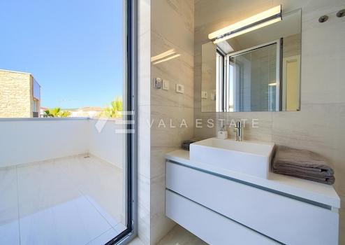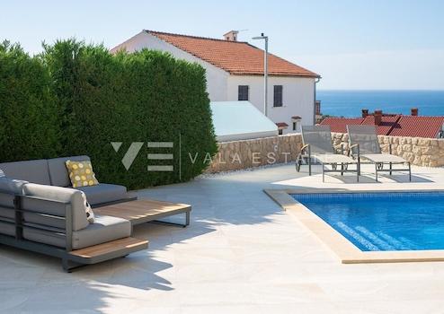 Immobilien auf der Insel Krk, Stadt Krk – zu verkaufen ist eine neue Luxusvilla in ruhiger Lage 500 m vom Meer und wunderschönen Stränden entfernt. Die Villa wurde 2016 in hochwertiger Bau- und Ausstattungsqualität erbaut, verfügt über Fußbodenheizung und -kühlung im gesamten Haus, einen Kamin, Videoüberwachung, hochwertige Aluminium-Tischlerei, Keramik und Sanitärkeramik in Top-Qualität, eine Solaranlage zur Warmwasserbereitung und für den Pool, eine Alarmanlage, Sicherheitstüren und eine Video-Gegensprechanlage. Es erstreckt sich über drei Etagen und bietet eine Gesamtwohnfläche von 400 m2. Im Untergeschoss befinden sich zwei Abstellräume, die als Wellnessbereich genutzt werden können, eine Toilette und ein großer Raum mit Küche und Grill mit Zugang zu einer überdachten Terrasse. Das Erdgeschoss umfasst einen Eingangsbereich, eine Toilette, eine Küche mit Essbereich und ein geräumiges Wohnzimmer mit Zugang zu einer überdachten Terrasse. Im ersten Stock gibt es eine Waschküche und drei weitere Schlafzimmer, jedes mit eigenem Bad, Kleiderschrank und Zugang zu einer Terrasse mit wunderschönem Blick auf das Meer. Der wunderschön angelegte und eingezäunte Garten, der Privatsphäre bietet, verfügt über einen beheizten Swimmingpool, eine Liegewiese, einen Gartengrill, automatische Bewässerung, drei Parkplätze und eine große Garage für zwei Autos. Dieses ausgezeichnete Anwesen ist ideal für alle Liebhaber eines luxuriösen und ruhigen Urlaubs.