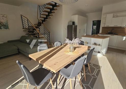 Immobilien Insel Krk, Stadt Krk – zum Verkauf steht eine komfortable zweistöckige Ferienwohnung im Erdgeschoss und im ersten Stock eines Mehrfamilienhauses in hervorragender Lage nur 650 Meter vom Meer und wunderschönen Stränden entfernt. Die Ferienwohnung mit einer Gesamtwohnfläche von 93,20 m2 besteht aus einer Eingangshalle, einem Badezimmer, einer Küche mit Esszimmer und einem Wohnzimmer im Erdgeschoss und einer Etage, die durch eine Innentreppe verbunden ist, wo sich ein Badezimmer und drei Schlafzimmer befinden, von denen eines einen wunderschönen offenen Blick auf das Meer und die Altstadt von Krk hat. Die Wohnung ist von einem eigenen angelegten Garten mit Bewässerung von 124 m2 umgeben, in dem sich eine Sommerküche mit beweglicher Markise und ein Gartenhaus befinden. Hochwertige Konstruktion, Ausstattung und Sanitäranlagen, Multi-Split-Klimaanlage in den Zimmern, Infrarot-Heizpaneele an den Decken der Zimmer, PVC-Außenschreinereiarbeiten und Sicherheitstüren sind einige der Merkmale dieser komfortablen Ferienwohnung. Sie wird voll ausgestattet und voll möbliert verkauft und ist sofort bezugsfertig. Ihm gehören zwei Parkplätze im gemeinsamen umzäunten Hof des Hauses. Aufgrund seiner Lage ist es eine großartige Möglichkeit zur Eigennutzung oder zur touristischen Vermietung.
