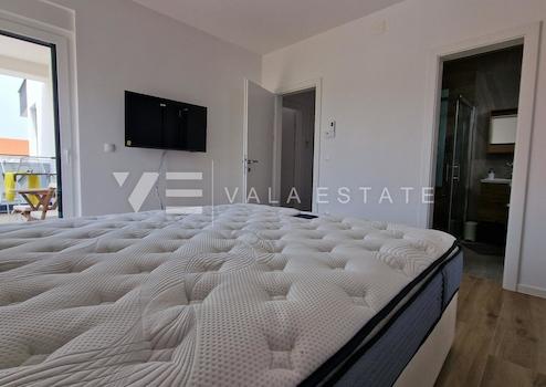 Immobilieninsel Krk, Malinska – zum Verkauf steht eine neue Doppelhaushälfte mit 156 m2 Wohnfläche, verteilt auf Erdgeschoss und erste Etage. Im Erdgeschoss befinden sich ein Eingangsbereich, ein Badezimmer, eine Küche mit Essbereich und ein geräumiges Wohnzimmer mit Zugang zu einer überdachten Terrasse. Im Obergeschoss befinden sich drei Schlafzimmer, jedes mit eigenem Bad und Ausgang zum Balkon. Im wunderschön angelegten Garten befindet sich ein Swimmingpool mit Liegewiese. Es ist komplett mit neuen modernen Möbeln eingerichtet und wird als solches verkauft. Für den Bau wurden hochwertige Materialien und Geräte verwendet, darunter Keramik- und Parkettbodenbeläge, Multisplit-Klimaanlage in allen Räumen, Wärmepumpen-Fußbodenheizung im Erdgeschoss, hochwertige dreischichtige PVC-Tischlerei, einbruchsichere Türen und hochwertige Sanitäranlagen . Es verfügt über zwei Parkplätze am Eingang des Hofes. Dieser schöne und hochwertige moderne Neubau befindet sich in einer sehr attraktiven und gefragten Lage, nur 600 m von wunderschönen Stränden und unweit des Dorfzentrums und aller Annehmlichkeiten entfernt.