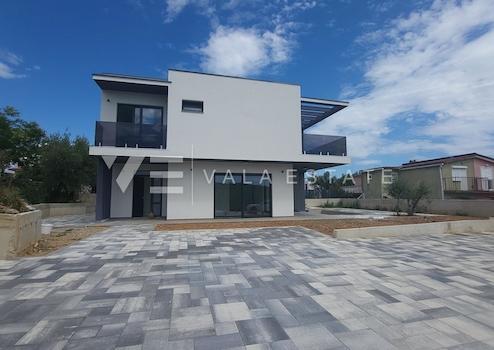 Immobilien auf der Insel Krk, rund um die Stadt Krk – in einer ruhigen Umgebung von Familienhäusern und Natur, eine neue freistehende Villa mit wunderschönem Blick auf das Meer zu verkaufen. Die auf einem Grundstück von 518 m2 gelegene Villa erstreckt sich über zwei Etagen mit insgesamt 144,30 m2 Wohnfläche. Im Erdgeschoss befinden sich ein Abstellraum, eine Toilette, eine Küche und ein Essbereich sowie ein Wohnzimmer mit Ausgang zur Terrasse und einem angelegten Garten mit Swimmingpool und Liegewiese. Im ersten Stock befinden sich drei Schlafzimmer mit jeweils eigenem Bad, zwei davon haben Zugang zu einer Terrasse mit Panoramablick auf das Meer. Für den Bau werden hochwertige Materialien verwendet, Bodenbeläge in einer Kombination aus Parkett und Keramik, PVC/ALU-Zimmerei und Wände mit dreischichtigem Glas, Fußbodenheizung im Erdgeschoss und in den Bädern sowie weitere hochwertige Ausstattungsmerkmale. Außendekoration und mediterrane Vegetation verleihen der Villa Privatsphäre, und im umzäunten Garten gibt es zwei Parkplätze. Die Lage ist ruhig, ca. 1500 m von schönen Stränden entfernt.