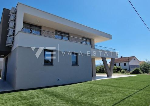 Immobilien auf der Insel Krk, rund um die Stadt Krk – in einer ruhigen Umgebung von Familienhäusern und Natur, eine neue freistehende Villa mit wunderschönem Blick auf das Meer zu verkaufen. Die Villa erstreckt sich über zwei Etagen mit insgesamt 212,99 m2 Wohnfläche. Im Erdgeschoss befinden sich zwei Abstellräume, eine Toilette, eine Sauna, ein Schlafzimmer mit eigenem Bad, eine Küche und ein Essbereich sowie ein Wohnzimmer mit Zugang zu einer überdachten Terrasse und einem angelegten Garten mit Swimmingpool und Liegewiese Bereich. Im ersten Stock befinden sich zwei Badezimmer, ein Ankleidezimmer und drei Schlafzimmer, jedes mit eigenem Ausgang zu einer überdachten Terrasse mit Blick auf das Meer. Hochwertige Bauweise und Ausstattung, Fußbodenheizung, Multisplit-Klimaanlage, Videoüberwachung sind nur einige der Merkmale dieser wunderschönen Neubauvilla. Die Außendekoration und die mediterrane Vegetation verleihen der Villa absolute Privatsphäre und es gibt auch zwei Parkplätze im umzäunten Hof. Geplante Baufertigstellung ist bis Juni Die Lage ist ruhig, ca. 1500 m von schönen Stränden entfernt.
