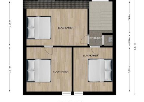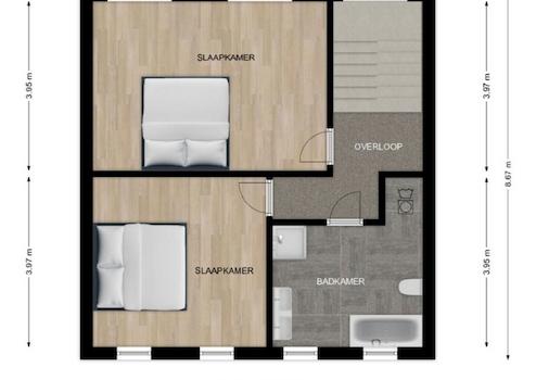 Die Schlafzimmer sind ca. 22 m² bzw. 16 m² groß und mit Laminatboden ausgestattet.