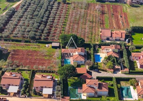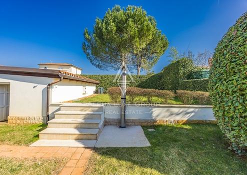 In einer ruhigen Wohngegend in der Nähe von Poreč befindet sich dieses gepflegte Haus mit einer Wohnfläche von 150 m² auf einem Grundstück von 950 m². Die Lage bietet Ruhe und Privatsphäre und liegt gleichzeitig nur wenige Fahrminuten vom Zentrum von Poreč entfernt, während das Meer und gepflegte Strände etwa 5 km entfernt sind. Das Haus erstreckt sich über zwei Etagen. Im Erdgeschoss befinden sich eine Eingangshalle mit Gäste-WC, zwei geräumige Schlafzimmer (eines mit eigenem Badezimmer), ein Hauswirtschaftsraum sowie ein großzügiges Wohnzimmer mit Essbereich im offenen Konzept. Die Küche ist durch Türen getrennt, und vom Wohnbereich gelangt man auf eine große Terrasse und in den Garten. Der Außenbereich bietet einen Swimmingpool mit Decking, eine Außendusche, eine überdachte Sommerküche mit großem Esstisch sowie einen zusätzlichen Abstellraum. Der Garten ist schön angelegt und regelmäßig gepflegt und bietet einen angenehmen Ort zum Entspannen. Im Obergeschoss befindet sich das Hauptschlafzimmer mit eigenem Badezimmer und zwei Balkonen – einer mit Blick auf den Pool und Garten und ein größerer Balkon mit schönem Meerblick. Das Haus ist mit Klimaanlagen zum Heizen und Kühlen ausgestattet, während ein Kamin im Wohnzimmer zusätzliche Wärme und Atmosphäre schafft. Am Eingang der Immobilie befinden sich zwei überdachte Parkplätze. Dank der Lage, des Pools und des Meerblicks eignet sich diese Immobilie ideal für das Familienleben, als Ferienhaus oder zur touristischen Vermietung.