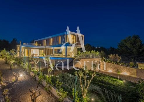 Die Villa erstreckt sich über zwei Etagen. Im Erdgeschoss befinden sich ein großzügiger Wohnbereich mit offener Küche und Essbereich, ein Gäste-WC sowie ein Hauswirtschaftsraum. Im Obergeschoss befinden sich vier Schlafzimmer, jeweils mit eigenem Badezimmer und Klimaanlage, sowie eine Terrasse mit Meerblick.