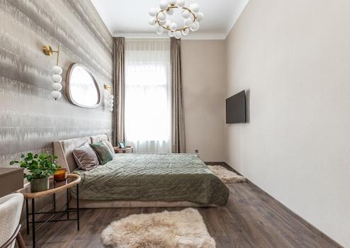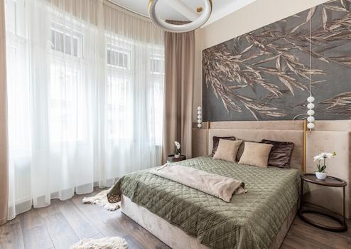A lakás egyik legnagyobb előnye az átgondolt, jól szeparált alaprajz. A két hálószoba egymástól távol helyezkedik el, mindkettő beépített gardróbszekrényekkel rendelkezik.