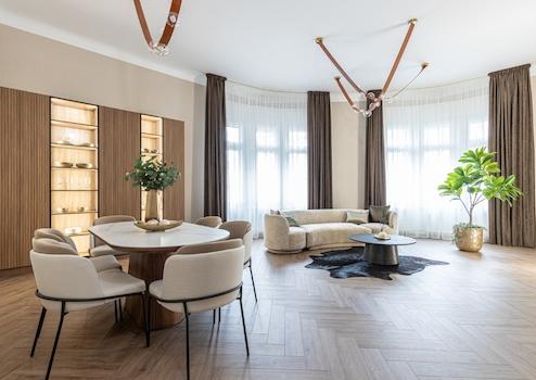 Nappaliban kialakított étkező, tágas, reprezentatív térrel