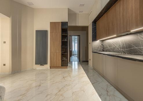 Die moderne, voll ausgestattete Küche verfügt über alle notwendigen Geräte, die technische Ausstattung der Wohnung ist auf dem neuesten Stand. Die Heizung wird durch einen Gas-Brennwertkessel gewährleistet, der durch die Kühl- und Heizfunktion der Klimaanlagen ergänzt wird.