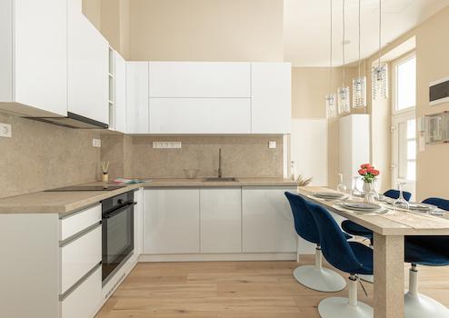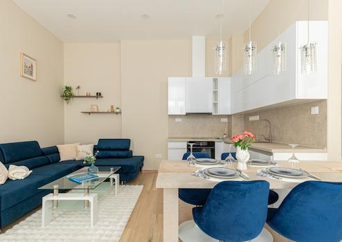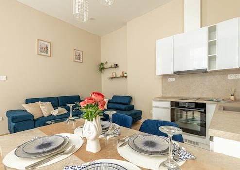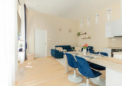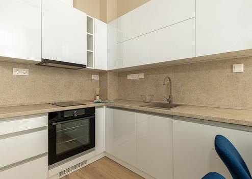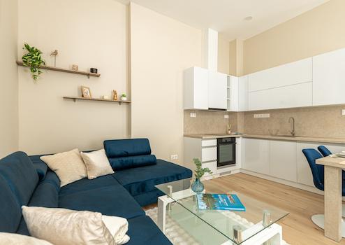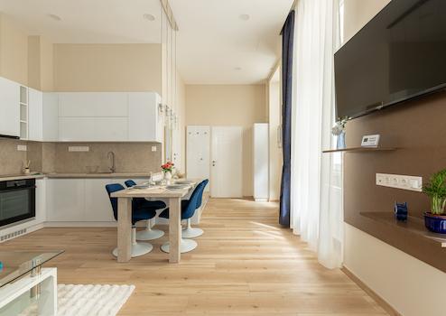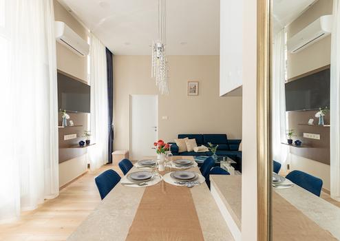 Die Wohnung wurde komplett renoviert, einschließlich der Erneuerung der Elektro- und Wasserleitungen. Es wurden Kunststofffenster und -türen, eine sichere Kunststoff-Eingangstür sowie drei Klimaanlagen eingebaut. Die Küche ist komplett ausgestattet: Einbaugeschirrspüler, Kühlschrank, Backofen, Kochfeld und Dunstabzugshaube sind vorhanden. Die Beleuchtung kann über ein Smart-Home-System gesteuert werden. In der Wohnung befinden sich drei Fernseher, die Anschlüsse wurden diskret in einer im Deckenbereich versteckten Box untergebracht.